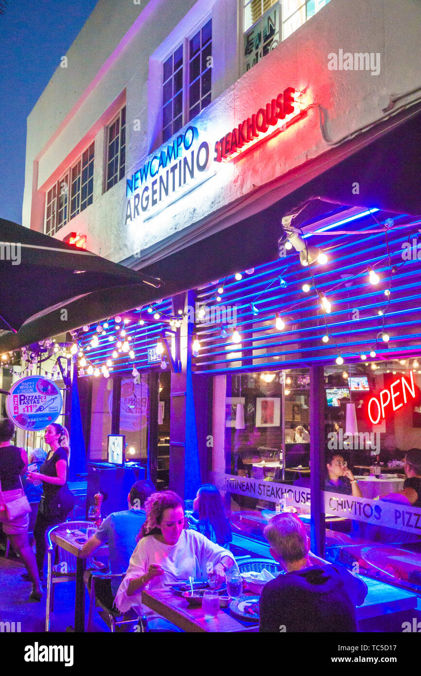 Miami Beach Florida North Beach Collins Avenue New Campo Argentino Steakhouse Restaurant Restaurants Food Dining Cafe Cafes Al Fresco Sidewalk Outside Stock Photo Alamy