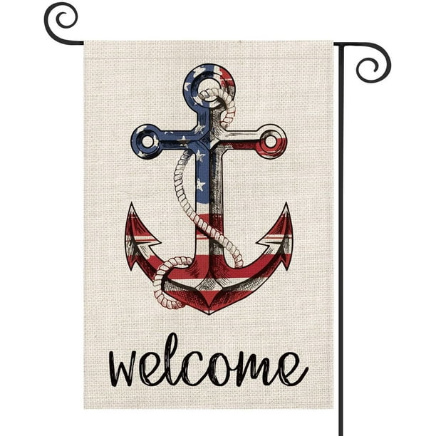 Welcome American Flag Anchor Garden Flag Vertical Patriotic Strip And Star Flag Double Sided 12 X 18 Inch 4th Of July Memorial Day Independence Day Flag Yard Outdoor Decoration Walmart Com