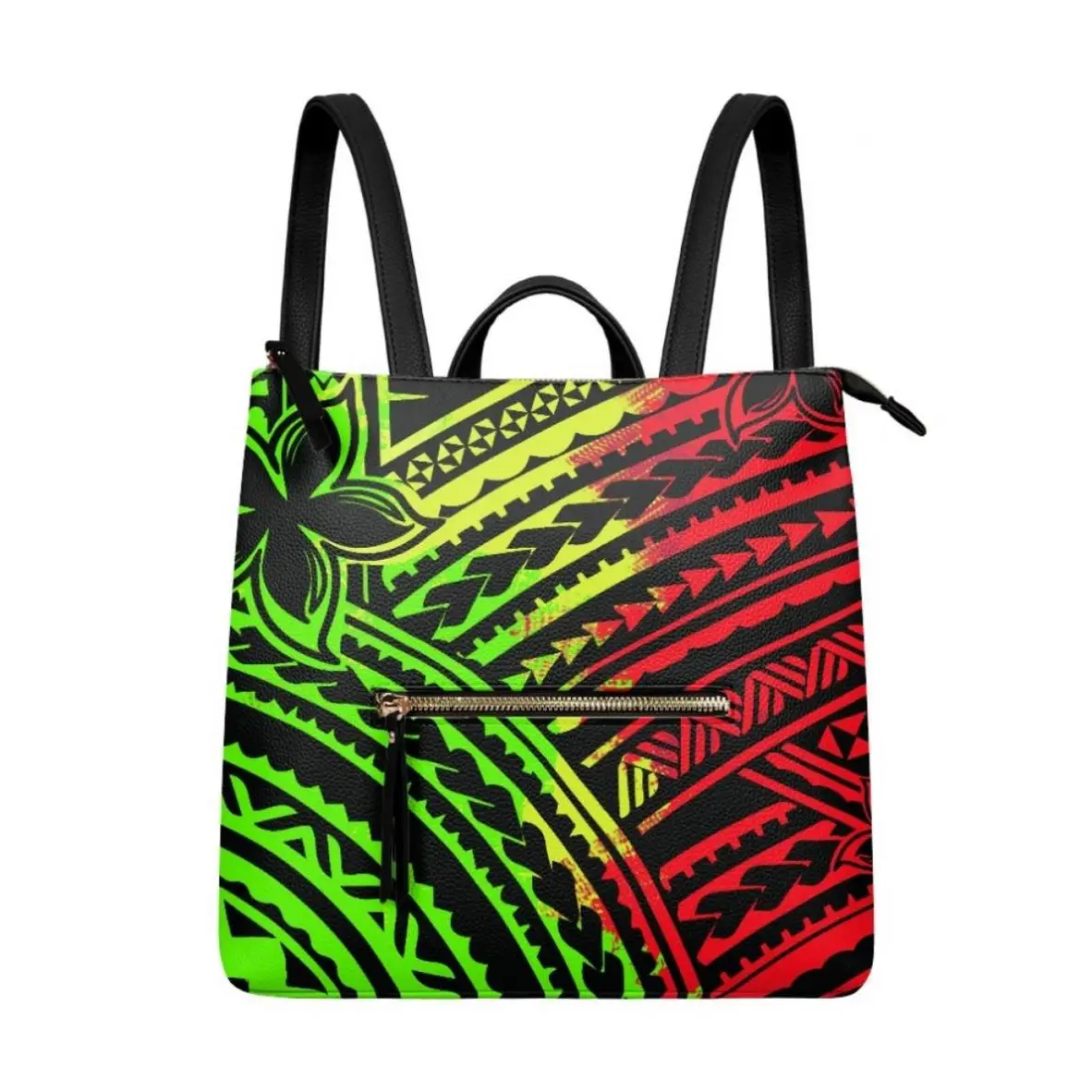 Source Fashion Backpack For Women Polynesian Tribal Flower Tattoo Reggae Pattern Casual Shoulder Bag Pu Leather Student Backpack Custom On M Alibaba Com